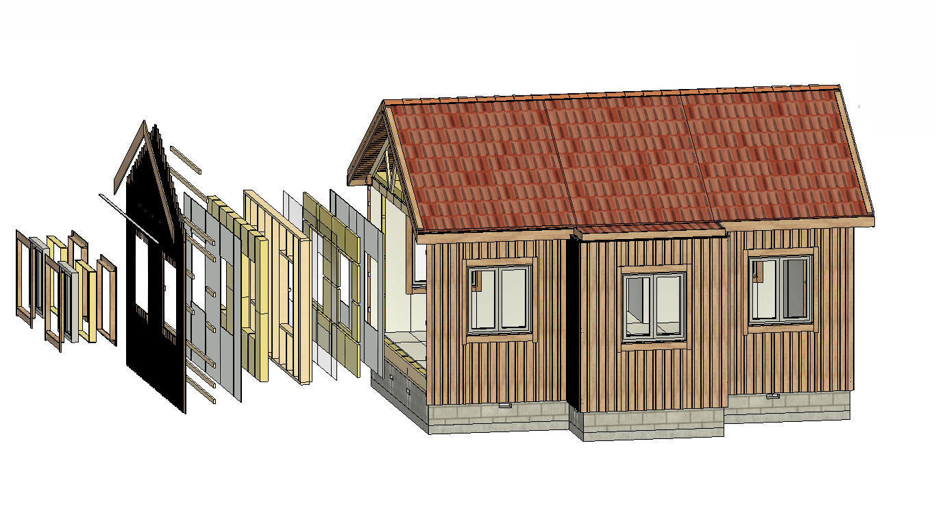 Projekt 5: Trähus Skoluppgift Projektet är en övning i att modellera ett trähus i Revit byggtekniskt korrekt, bräda för bräda. Funktioner i Revit som använts är : Displacements, Callouts samt Mängdning